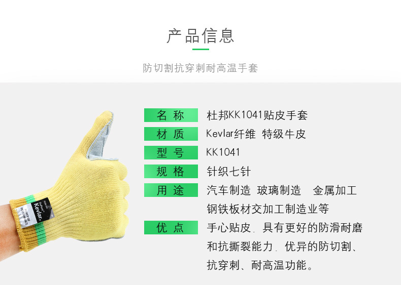 Dupont杜邦KK1041 Kevlar® 7针纤维制耐切割贴皮手套