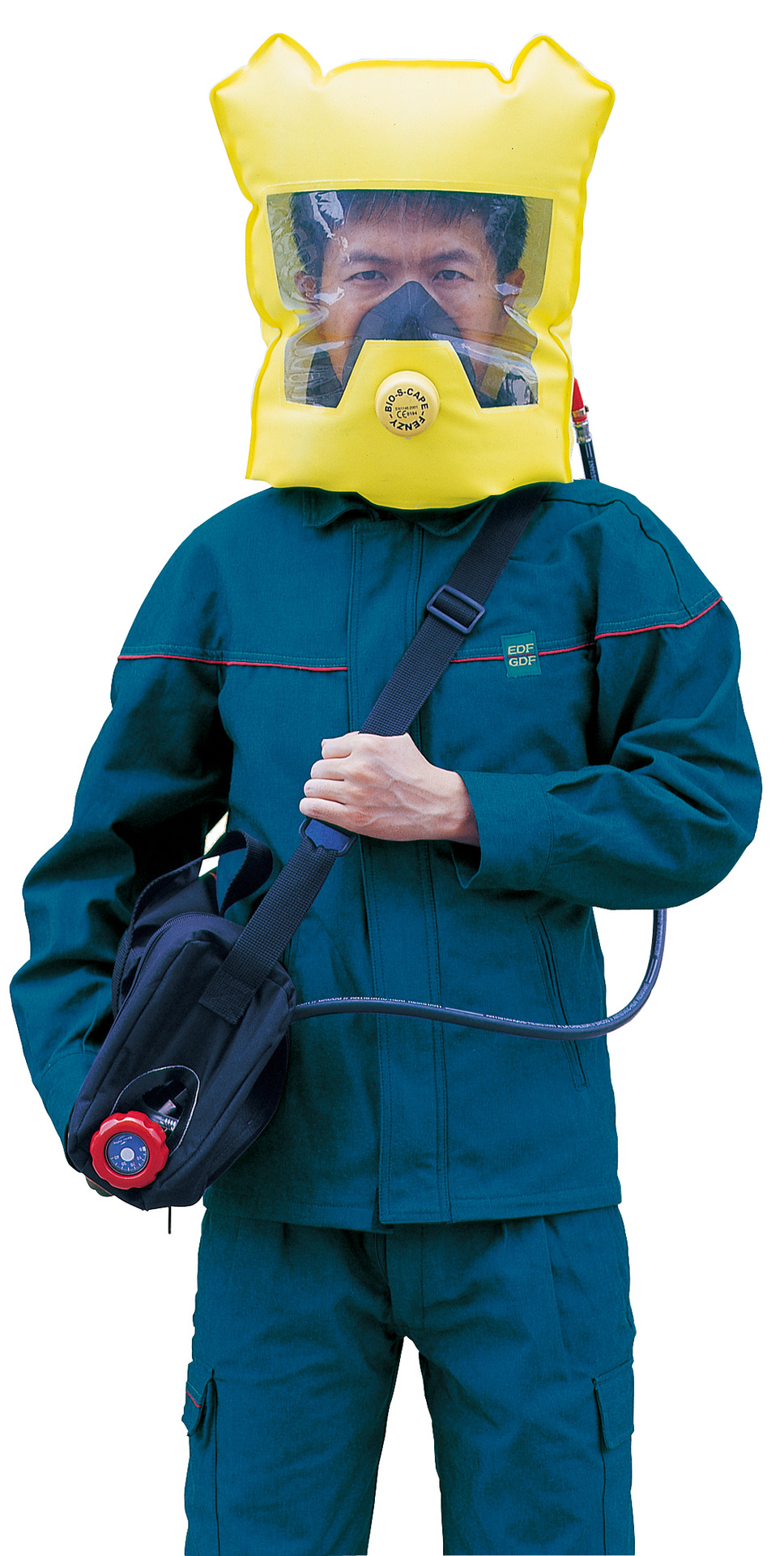 产品描述: 恒流式逃生空气呼吸器,带有1个2升300巴带压力表气瓶,可使用约15分钟