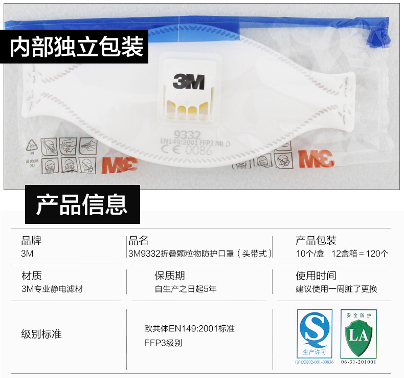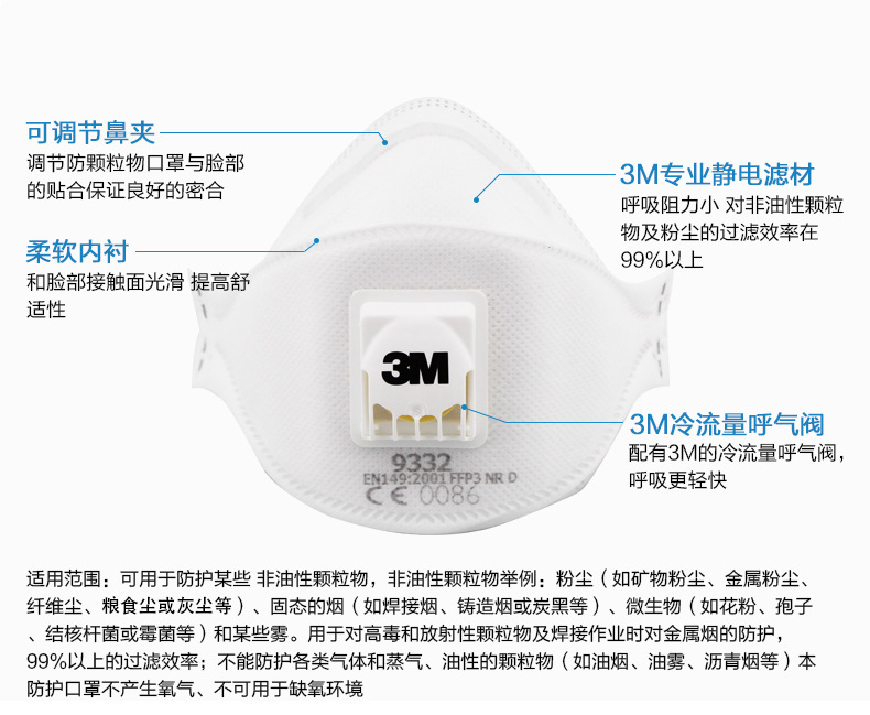 3M 9332防颗粒物口罩 FFP3口罩