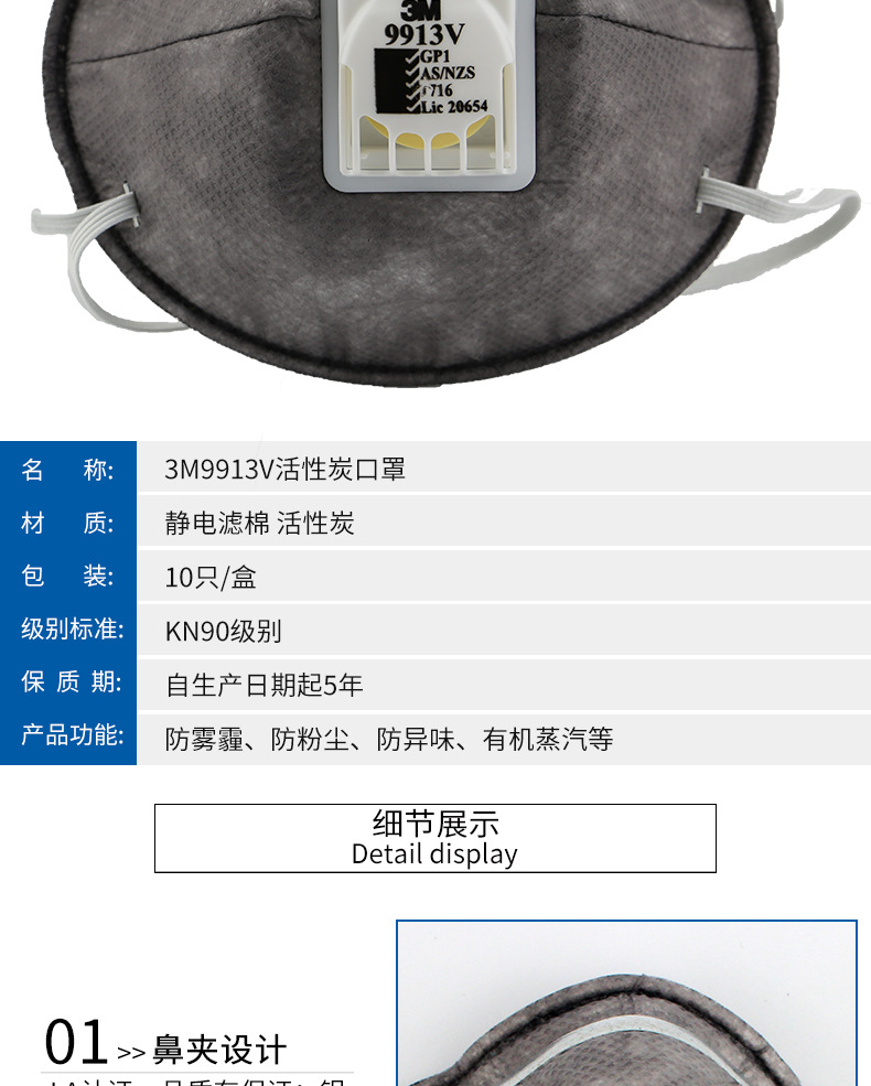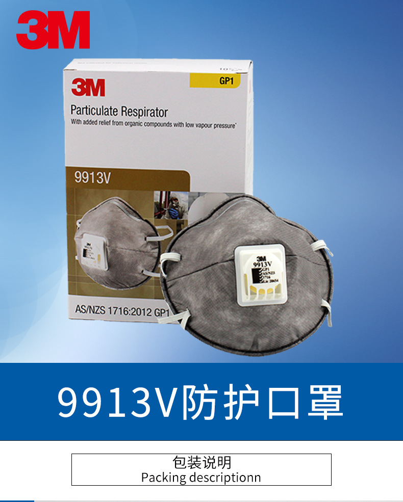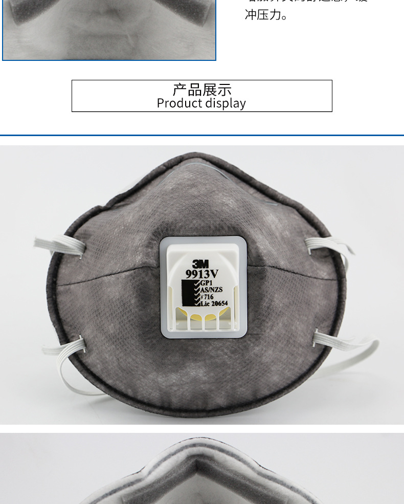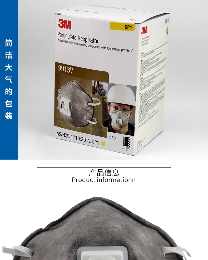 产品名称:3M 9913V口罩 防有机蒸气异味及颗粒物活性炭口罩防尘毒防尘口罩
