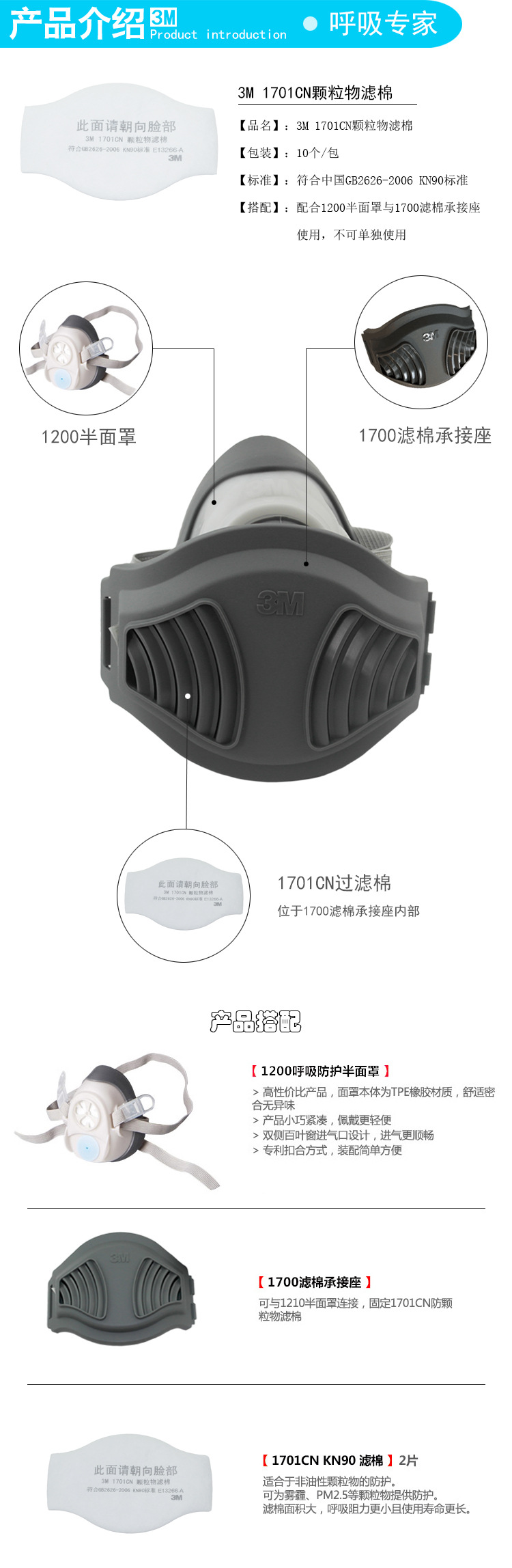 3M 1701CN颗粒物滤棉
