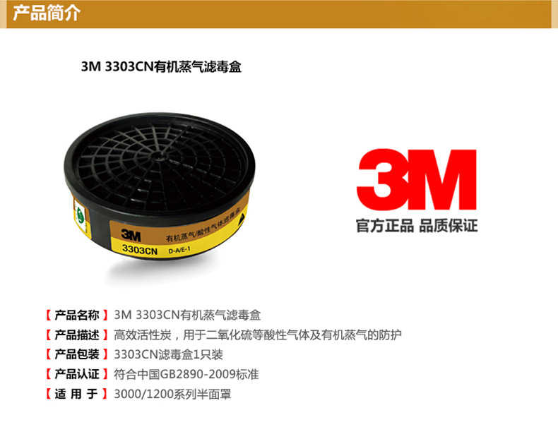 3M 3303CN有机蒸气/酸性气体滤毒盒