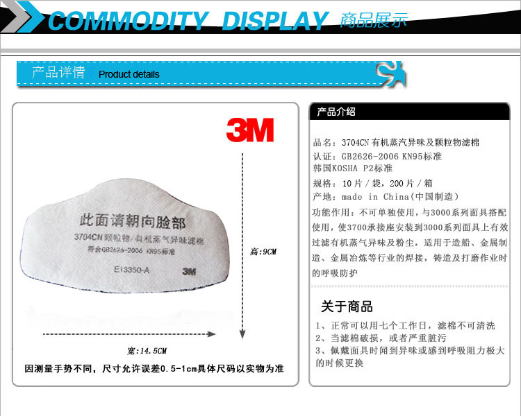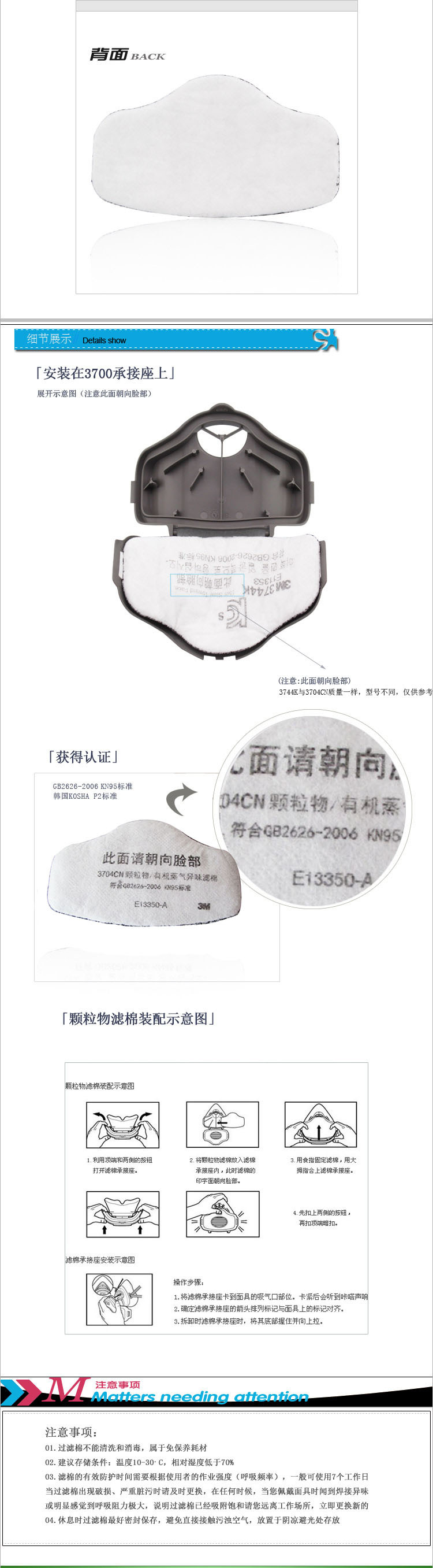 3M 3704CN颗粒物/有机蒸气异味减除滤棉