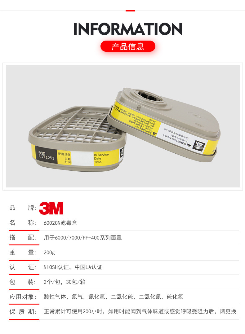 3M 6002CN酸性气体滤毒盒