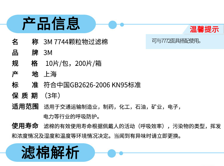 3M 7744颗粒物滤棉