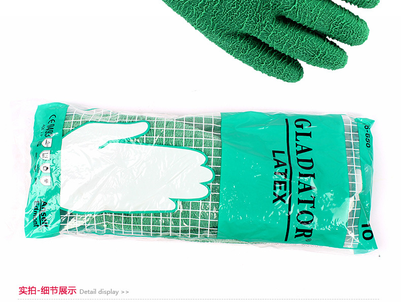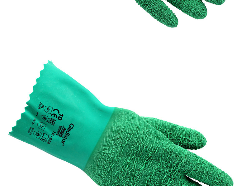 产品说明:一款全能型的手套,手套表面的纹路设计,增加了防滑性,无论是油性还是非油性环境中。橡胶手套天然的耐酸碱性能和防化性,/值得一提的是他的机械性能(强度)和耐高温(250℃)的特性,这个是ANSELL手套的强项的地方。棉内衬防滑吸汗,适合长时间佩戴。