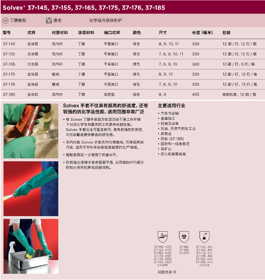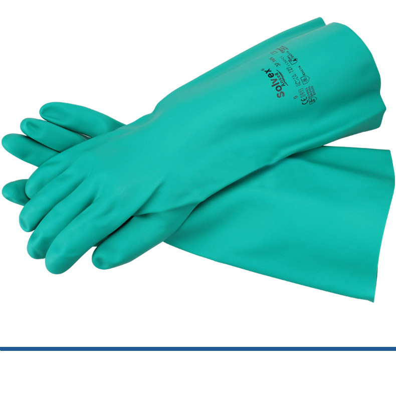 【产品说明】:Sol-Vex是一种由高性能的丁腈胶料制成的手套。这种手套既有较高的强度,又有较强的抗化学品性能,适用范围非常广泛。Sol-Vex手套长久以来一直被认为是行业的标准