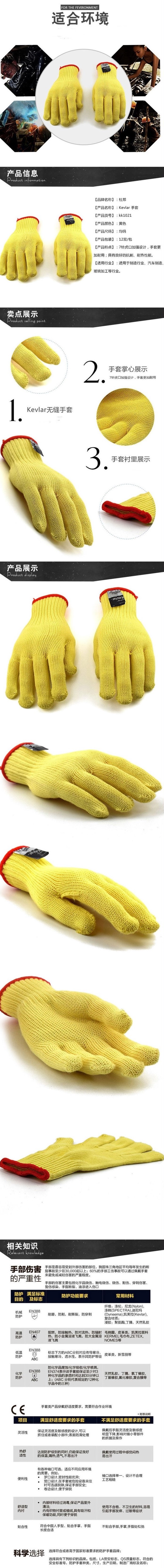 Dupont杜邦KK1021 Kevlar® 纤维制7针虎口加强手套
