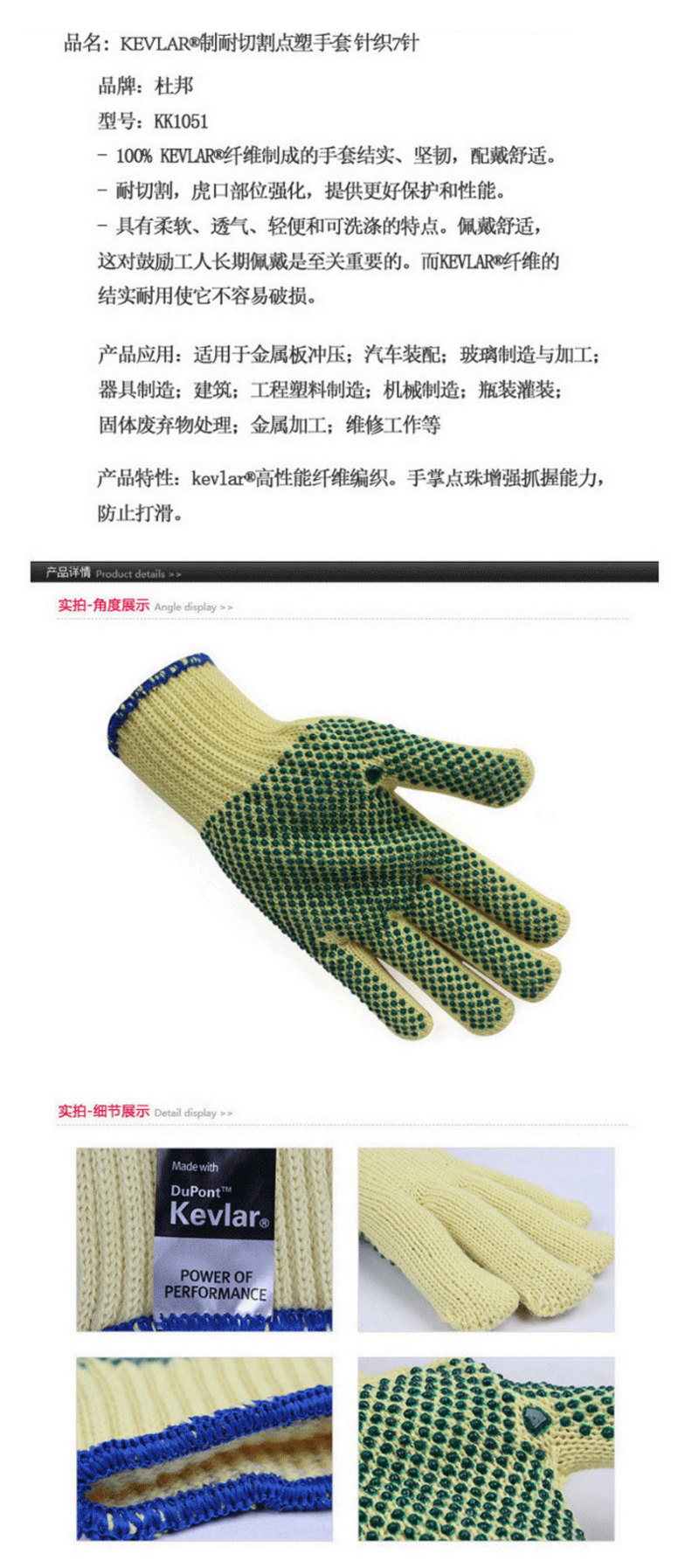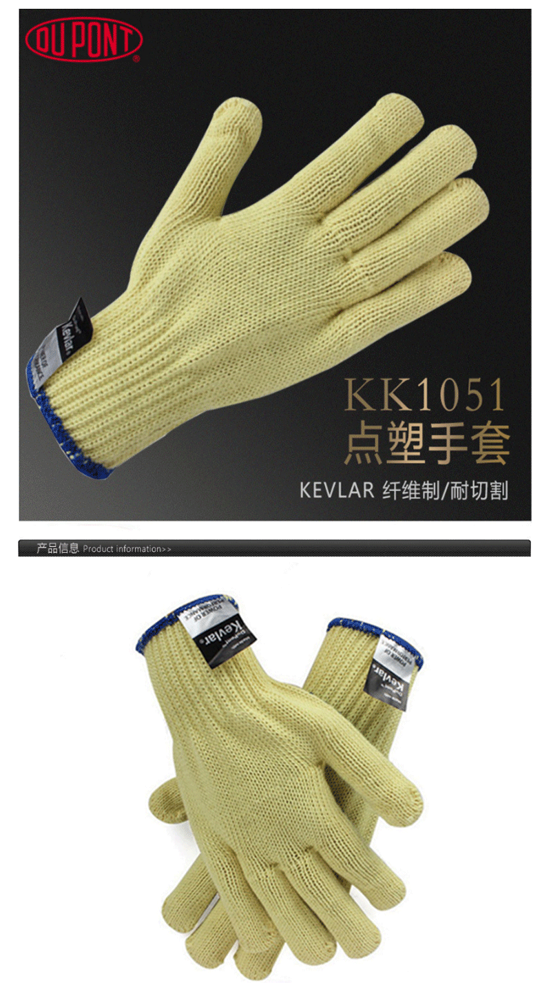 Dupont杜邦KK1051 Kevlar® 7针纤维制耐切割点塑手套