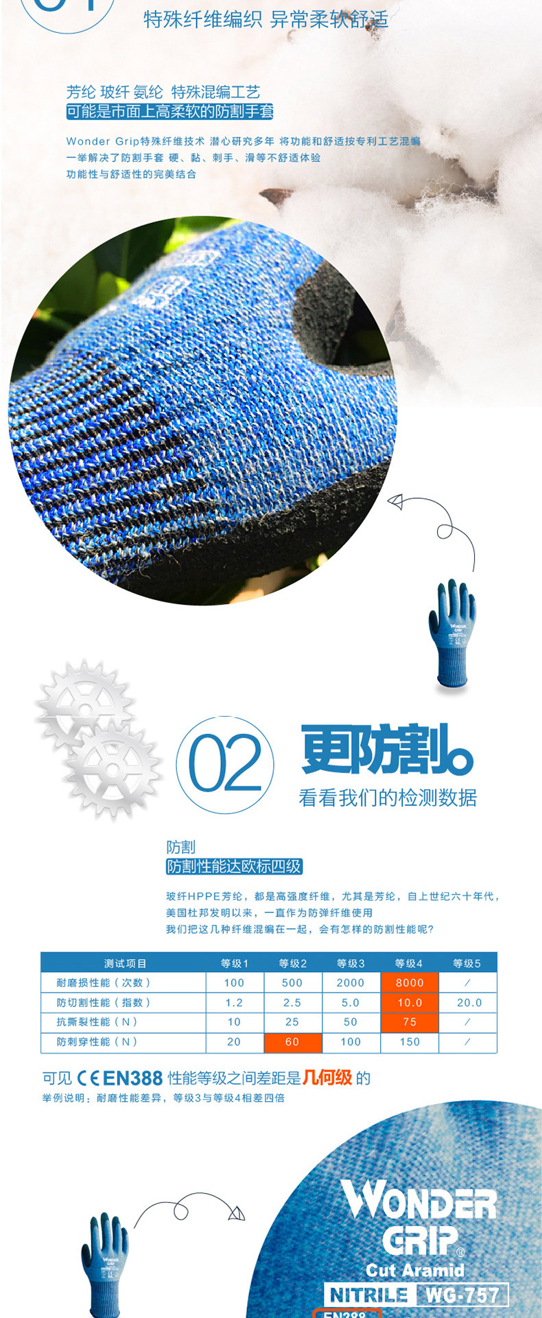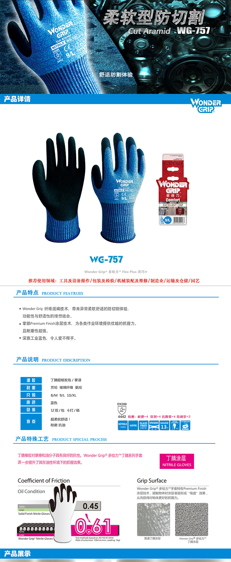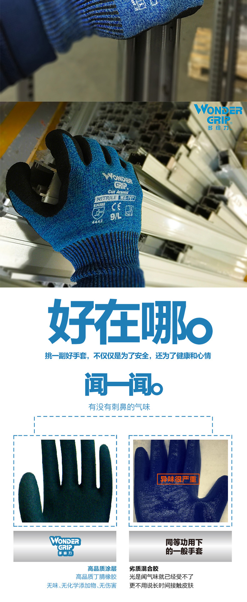 WonderGrip多给力WG-757四级柔软透气型防切割手套