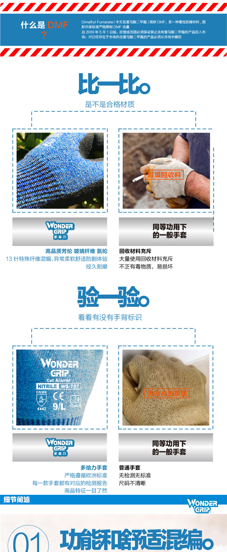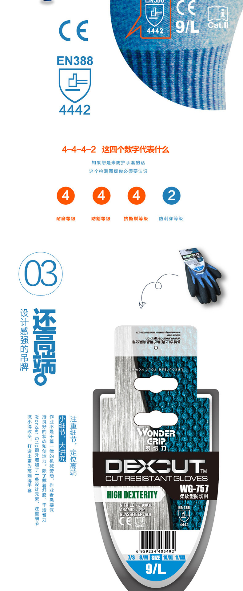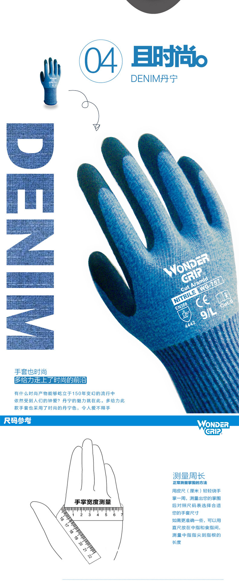 WonderGrip多给力WG-757四级柔软透气型防切割手套