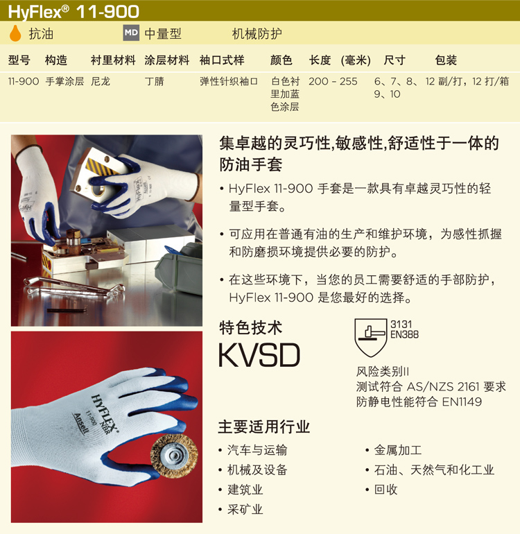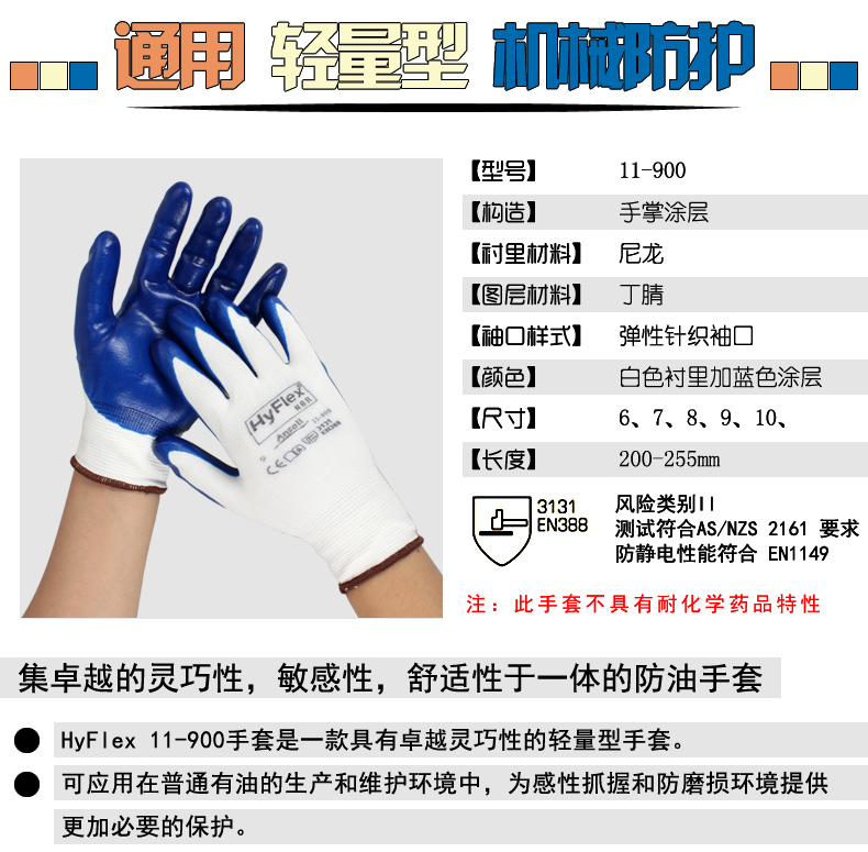 ANSELL安思尔11-900 HyFlex Foam灰色通用工作手套
