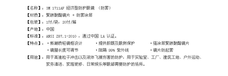 3M 1711AF访客用防护眼镜