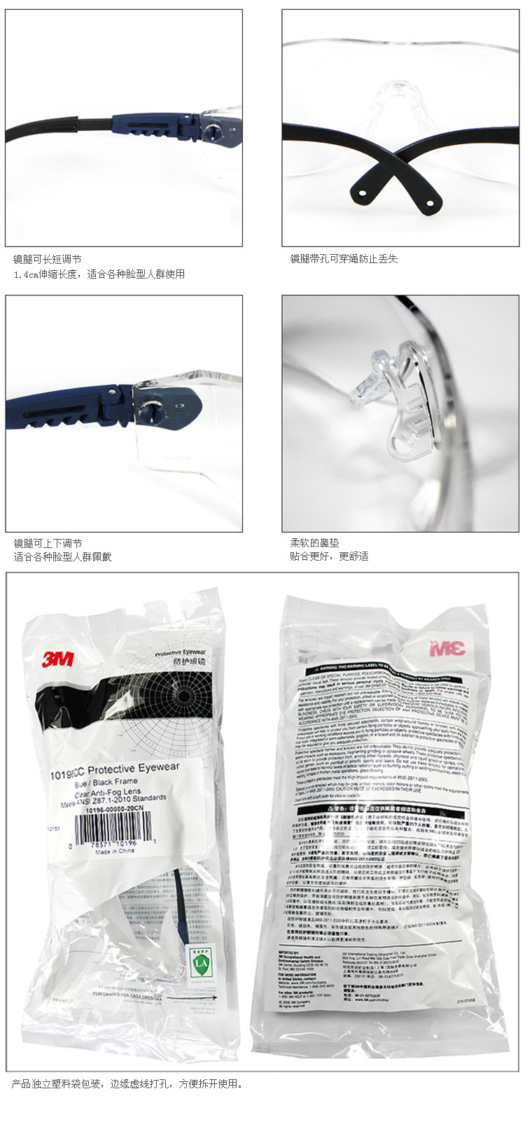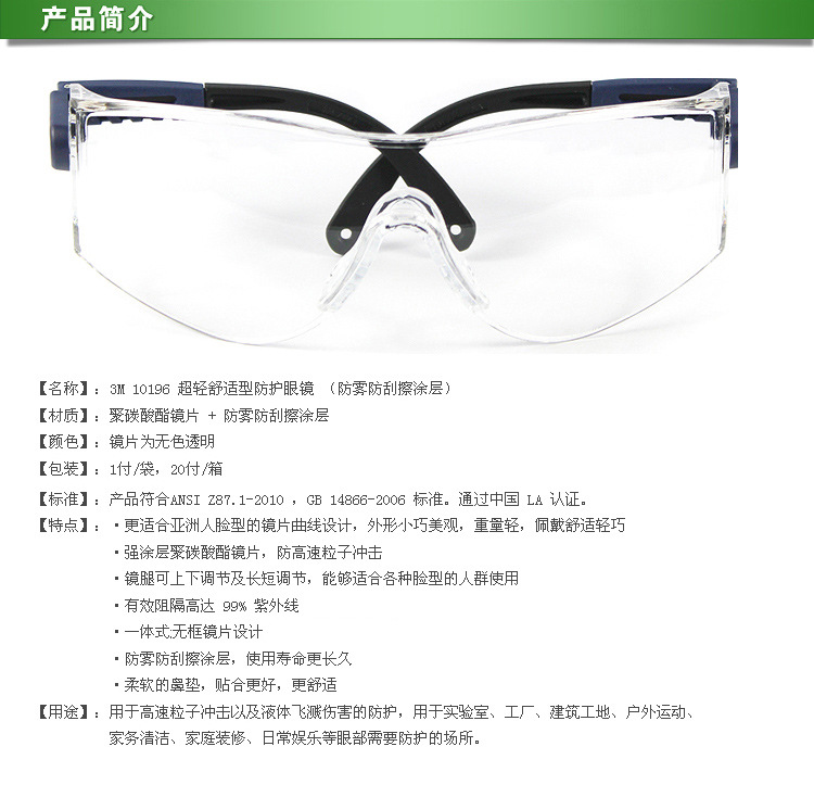 3M 10196超轻舒适型护目镜(防雾防刮擦涂层)