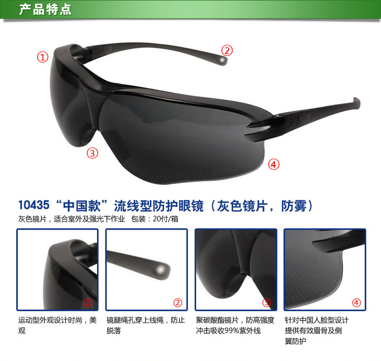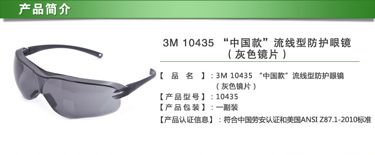 3M 10435 中国款防护眼镜灰色镜片防雾