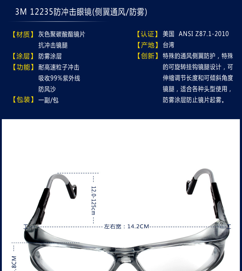 3M 12235舒适型防雾防护眼镜(带侧翼通风)