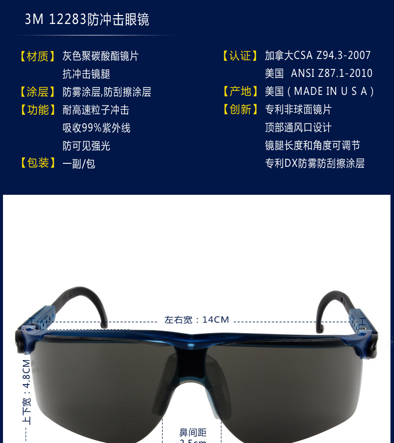 3M 12283时尚豪华型防护眼镜(防雾防刮擦)