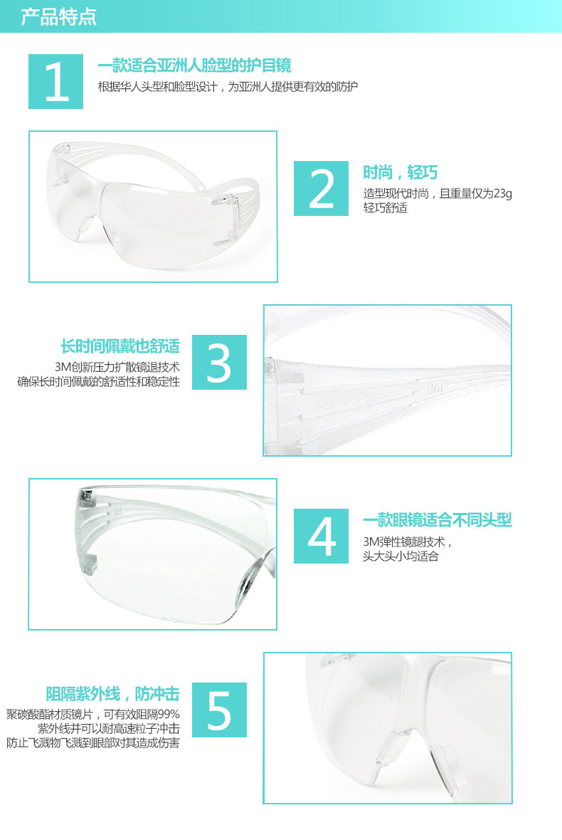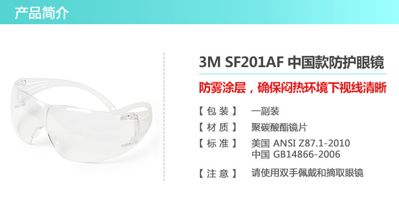 3M SF201AF SecureFit超贴合安全防护眼镜