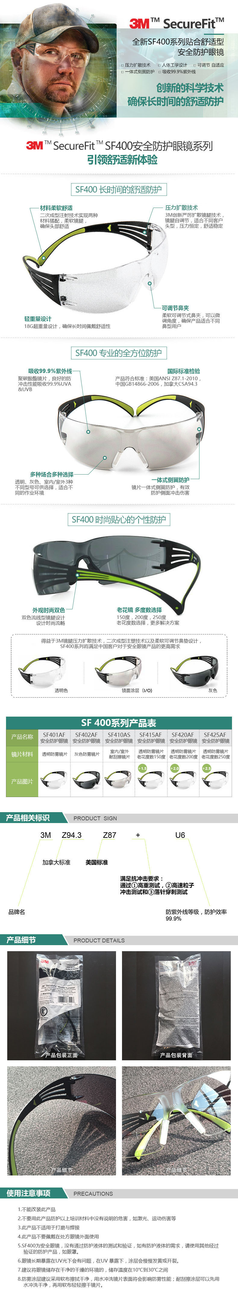 3M SF401AF SecureFit400系列超贴合舒适型安全防护眼镜