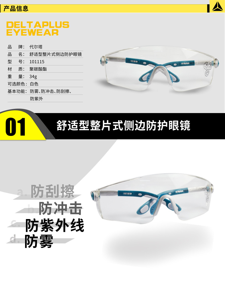 代尔塔 101115舒适型一体式侧边防护眼镜
