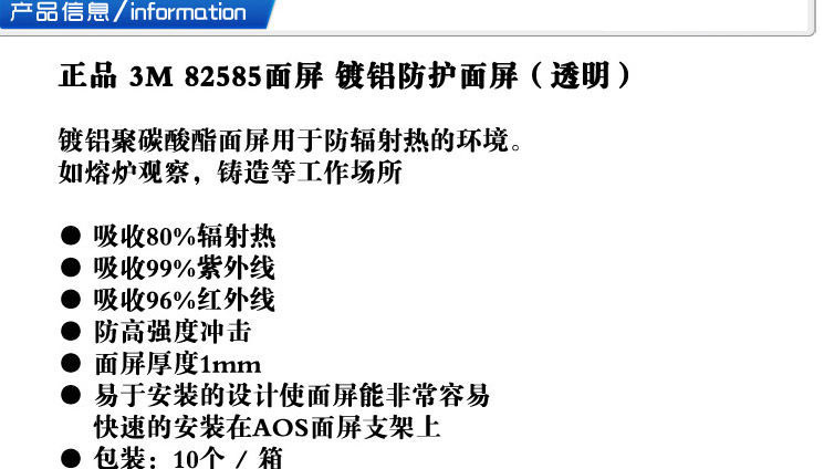 3M 82585镀铝防护面屏(透明)