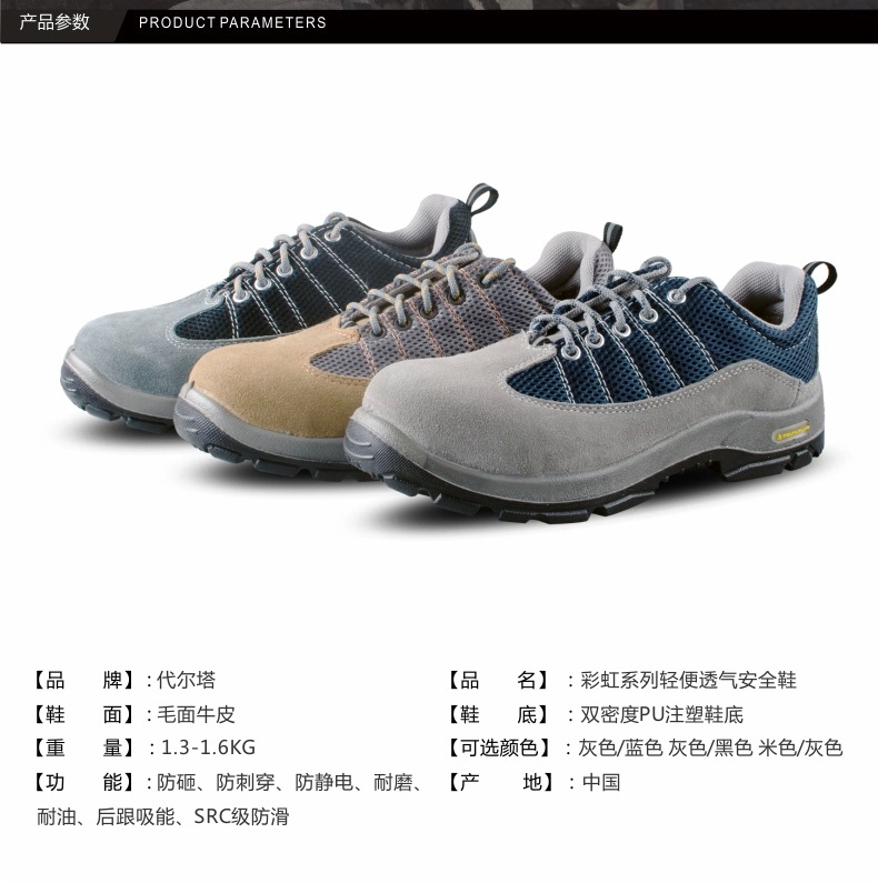 DELTA/代尔塔301322 彩虹系列低帮安全鞋 灰蓝色 防砸 防刺穿