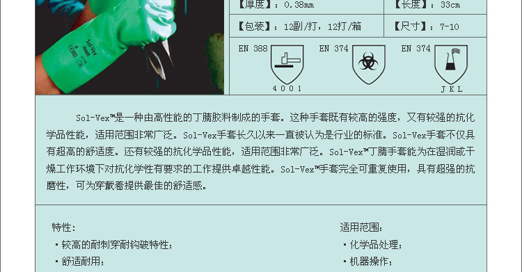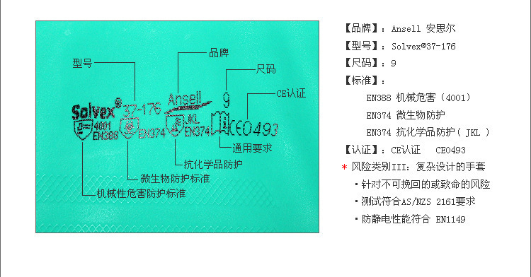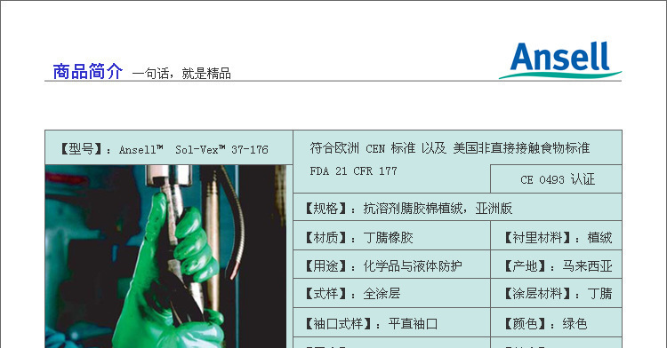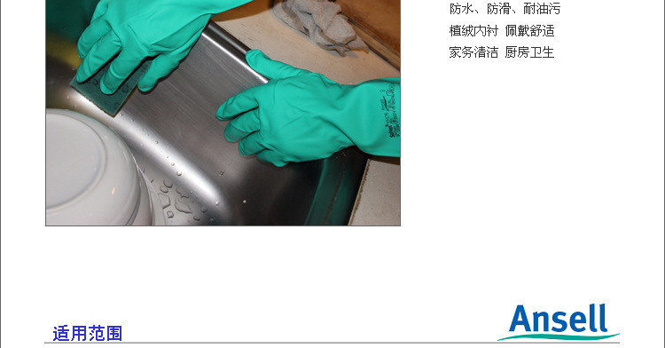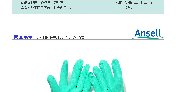 安思尔37-176植绒丁晴手套防水防滑放油耐酸碱手套