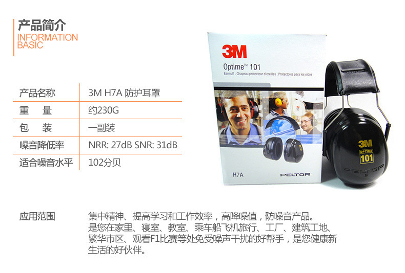 3M PELTOR H7A头戴式降噪耳罩