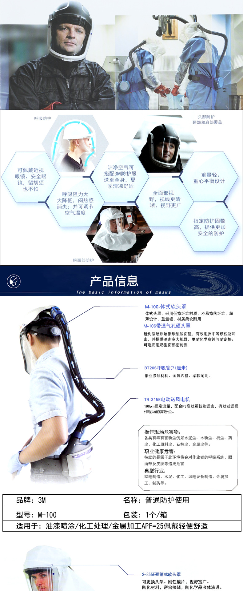3M M-100电动送风头罩