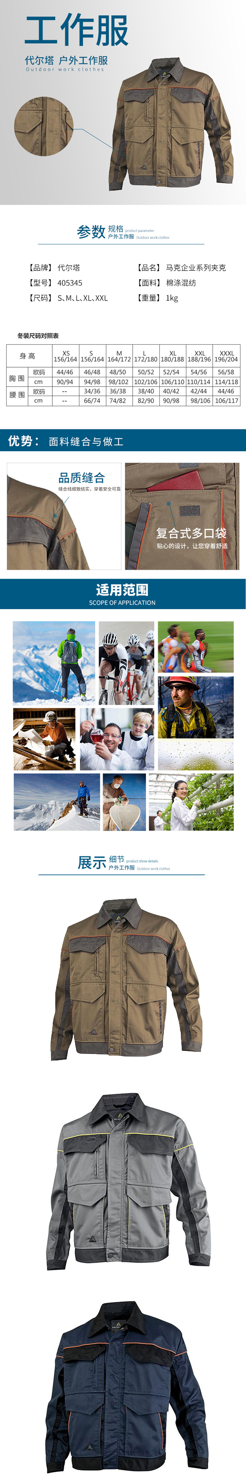 代尔塔 405345 马克企业系列棉涤混纺夹克