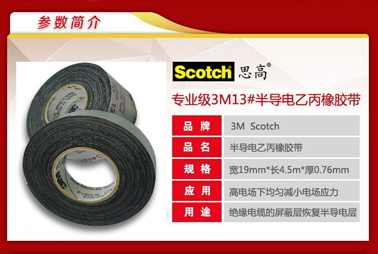 3M Scotch思高 13# 半导电乙丙橡胶绝缘胶带