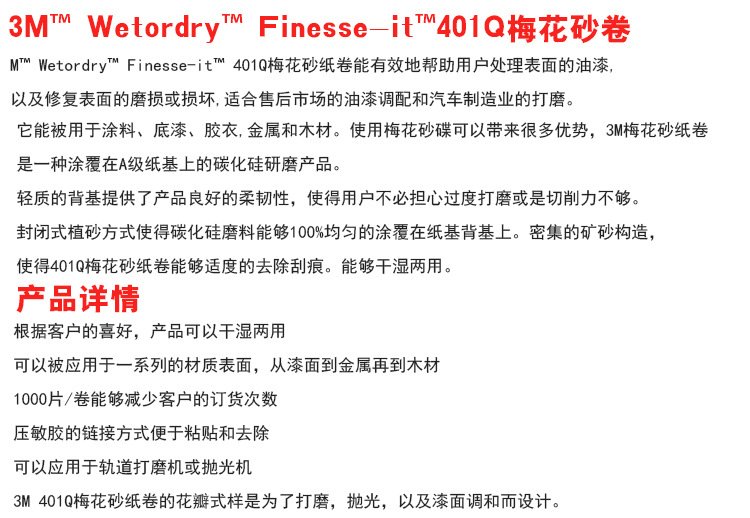 3M 401Q 梅花型背胶精密砂碟卷