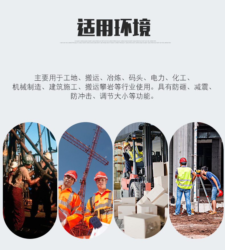 适 用 于:建筑工地、仓库重地、车间、隧道、修道、考察、铁路、施工、抢险、维修、环卫、绿化、工厂、装修等工作环境。