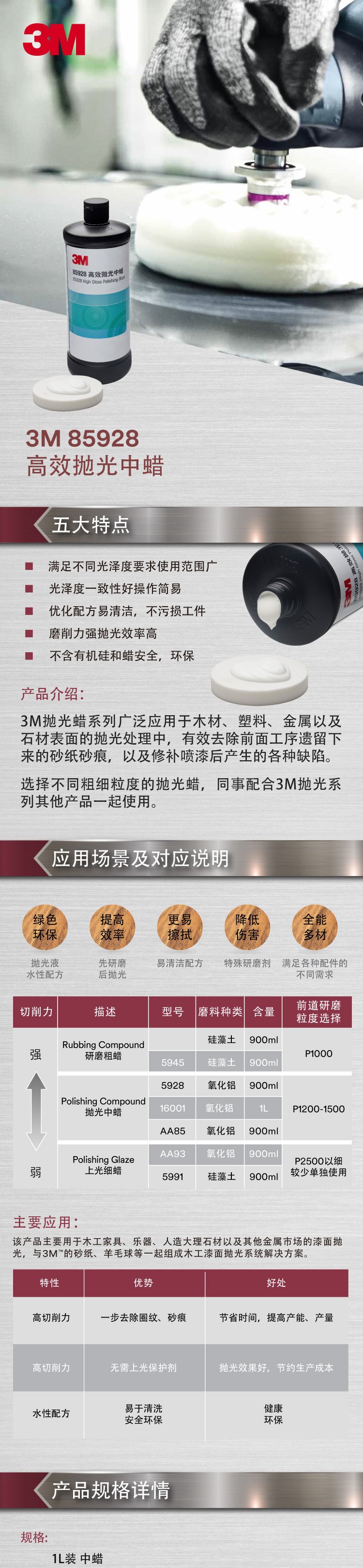 3M 85928 高效研磨中蜡