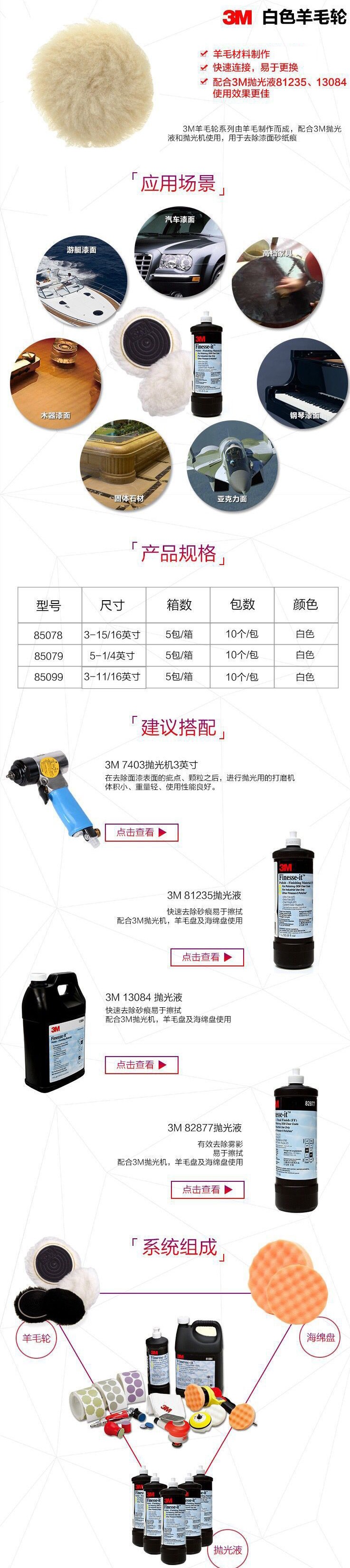 3M 85078 高密度羊毛球抛光盘(长毛)