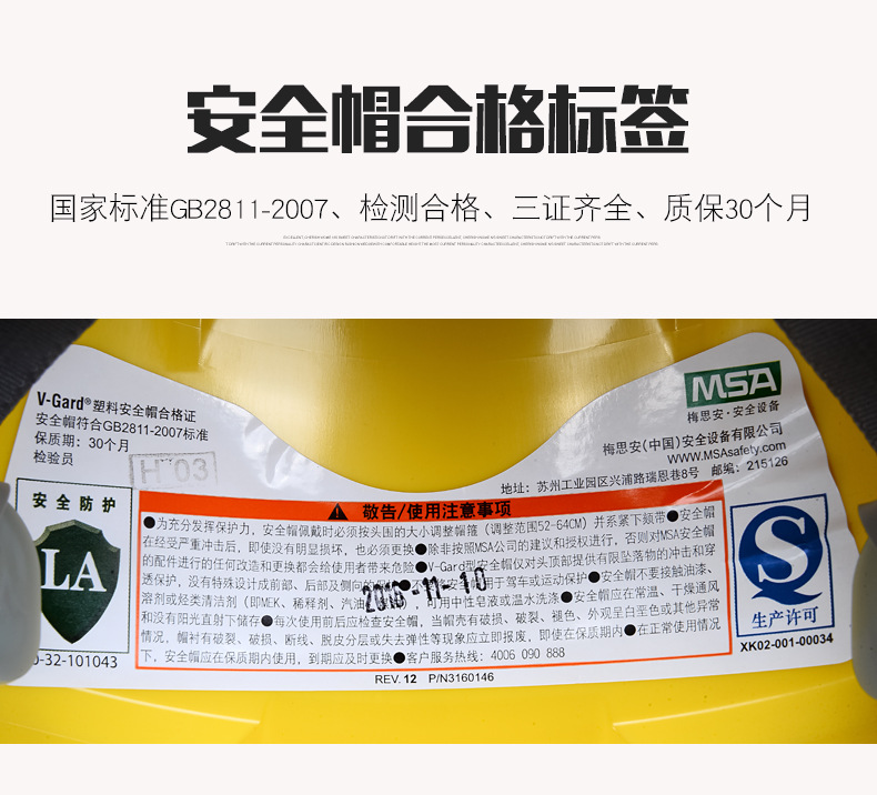 产品认证:通过国家安全检测GB2811-2007,有质检报告