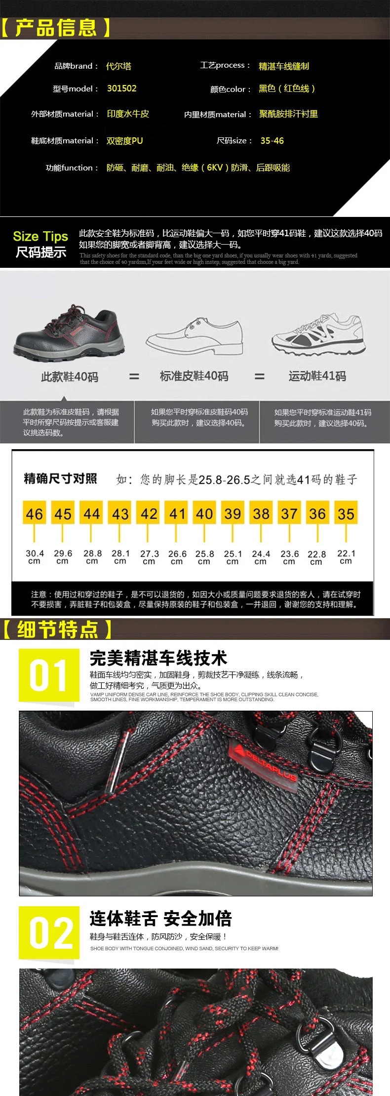 Delta代尔塔 301501/301502 高品质低帮安全鞋
