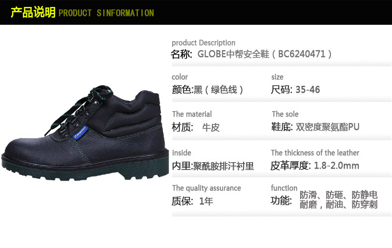 霍尼韦尔 BC6240471 GLOBE中帮安全鞋