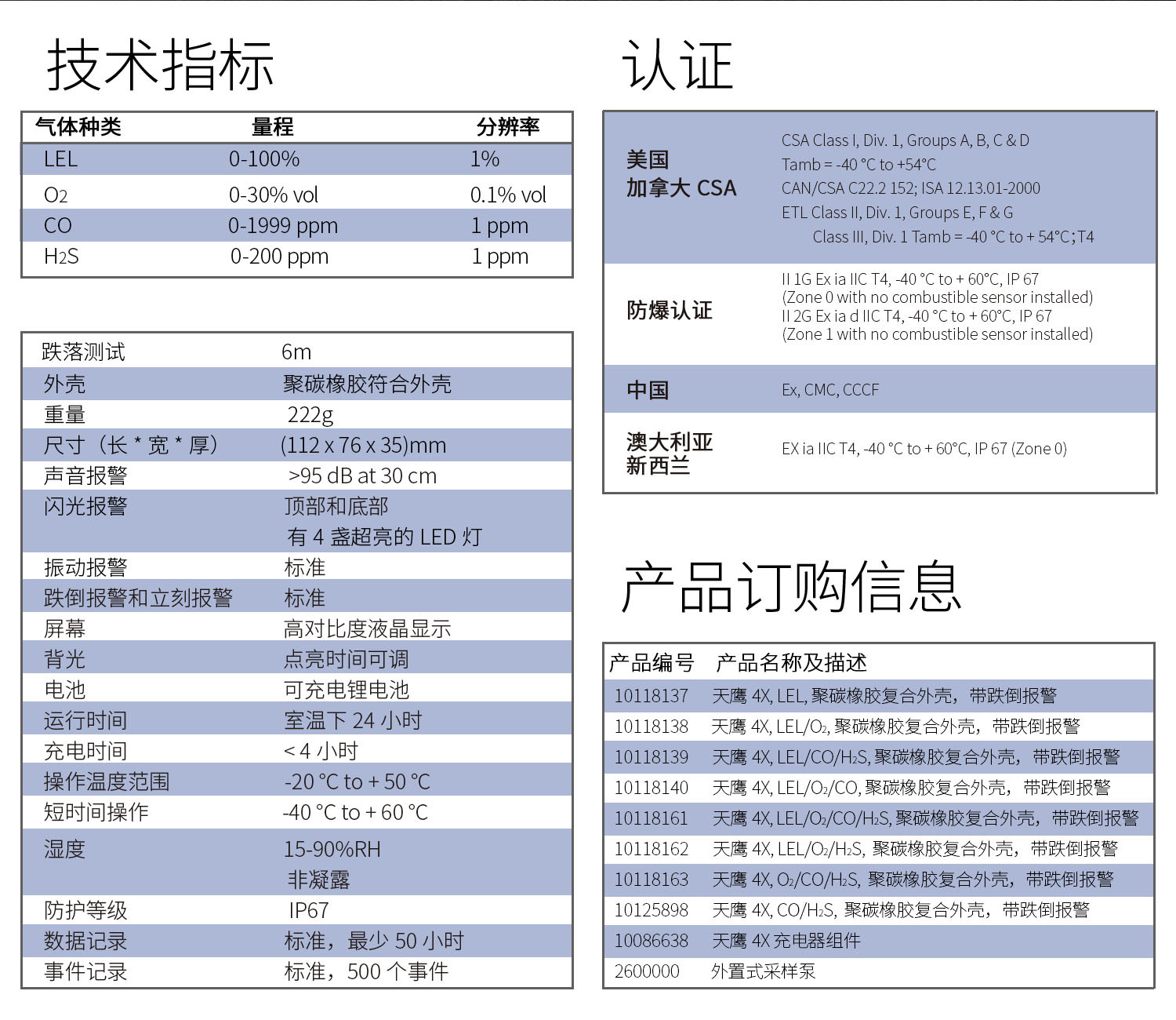 ·MSA天鹰单一可燃气体检测仪是市场上通过CCCF消防强制认证的可燃气体检测仪,内置X智能新一代传感器,传感器响应时间在15秒以内为业界领先水平,典型寿命长达四年,整机质保达到了三年;跌倒报警及立即报警功能让工作更加安全可靠,-40℃至70℃的工作温度范围,IP67防水防尘,通过市场上独有6米跌落测试,同时该仪表兼容于MSA天鹰智能测试系统,让标定变的简单可靠。