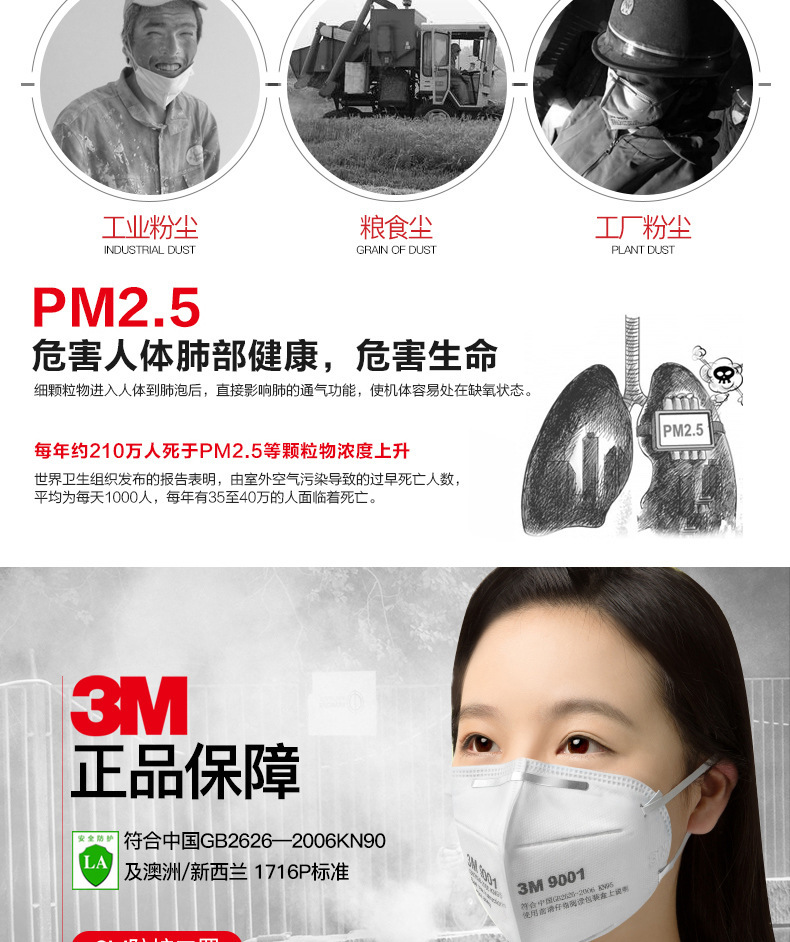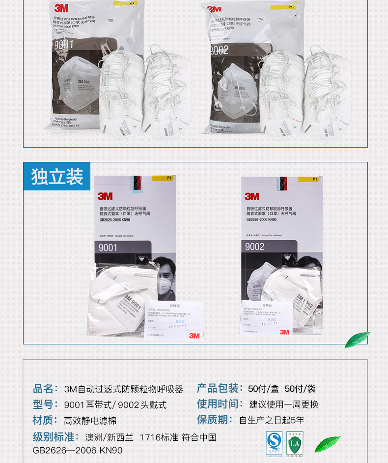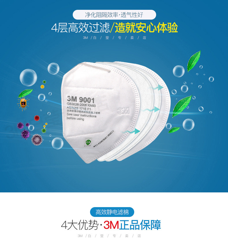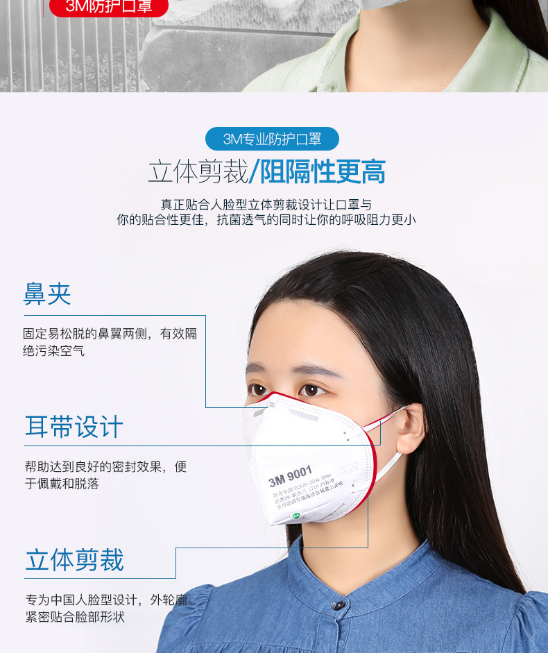 3M 9001A折叠式防颗粒物口罩(耳带式)