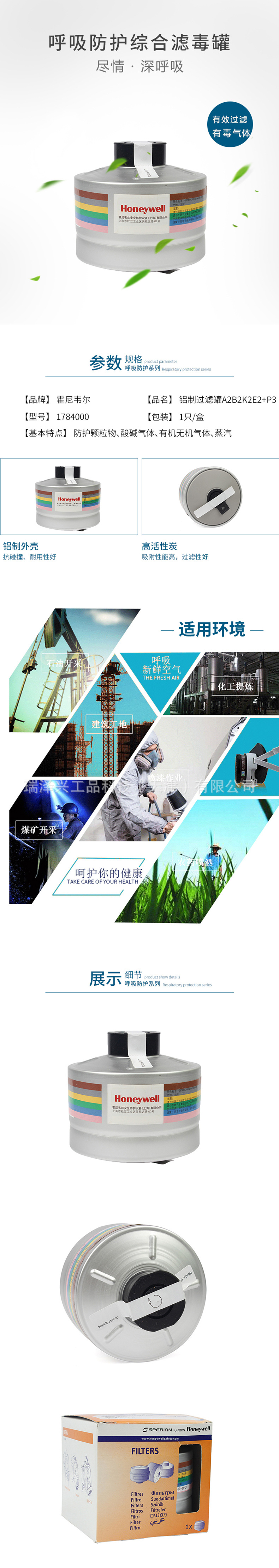 霍尼韦尔 1784000 A2B2K2E2+P3综合性气体及颗粒物滤毒罐(铝质)