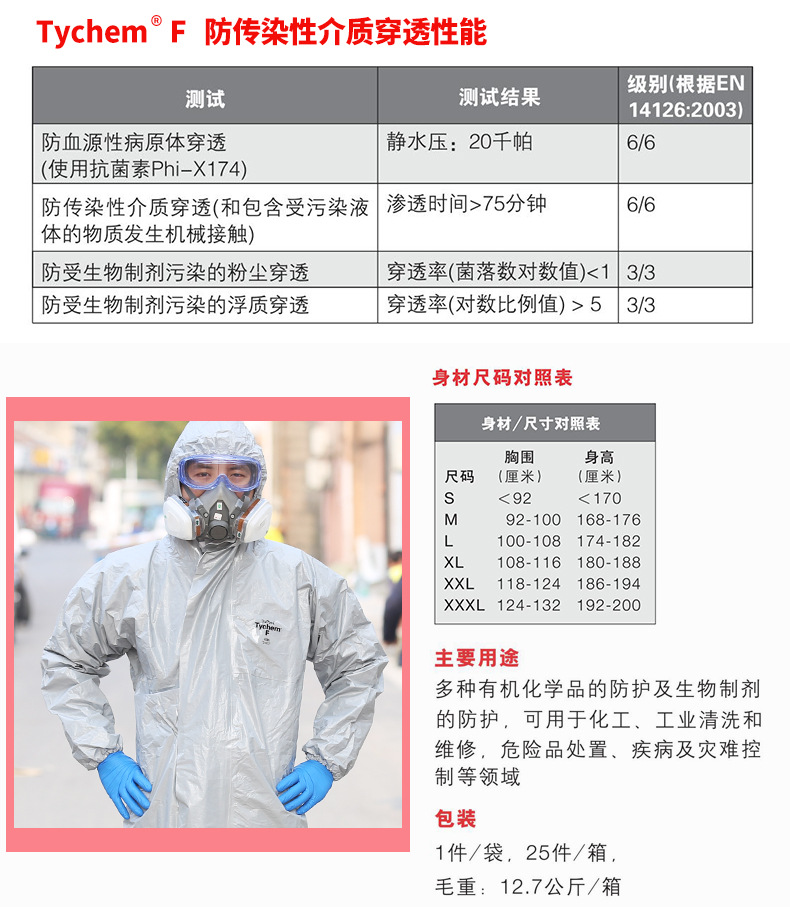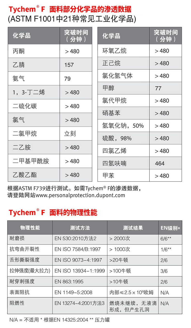 Dupont杜邦 Tychem F化学防护服/耐酸碱、有机物防化服