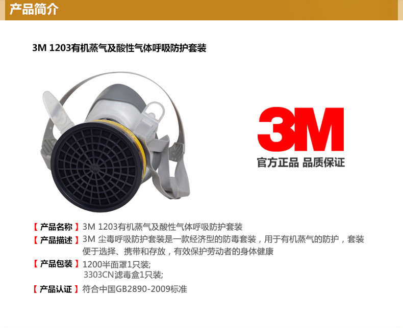 3M 1203有机及酸性气体呼吸防护组合