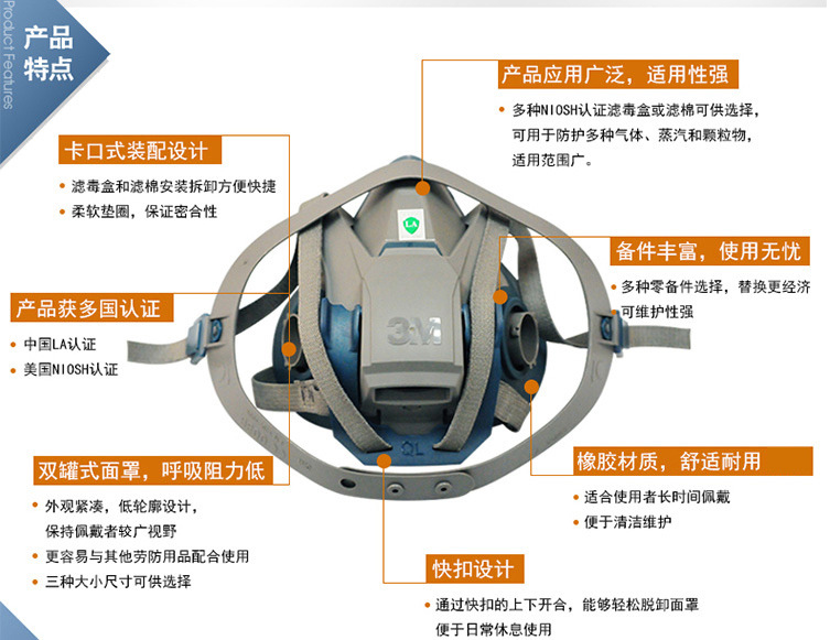 3M 6502硅胶材质半面型防毒面具(标准版)