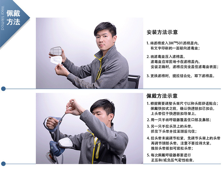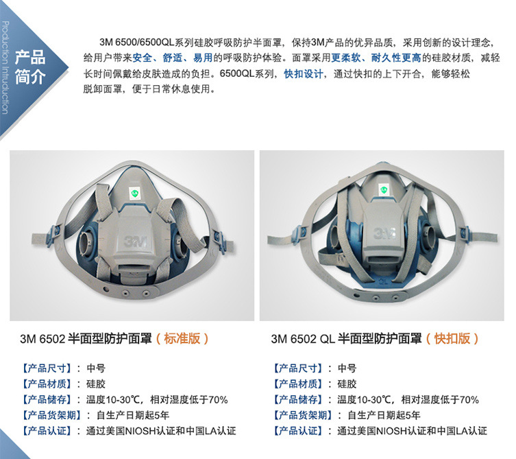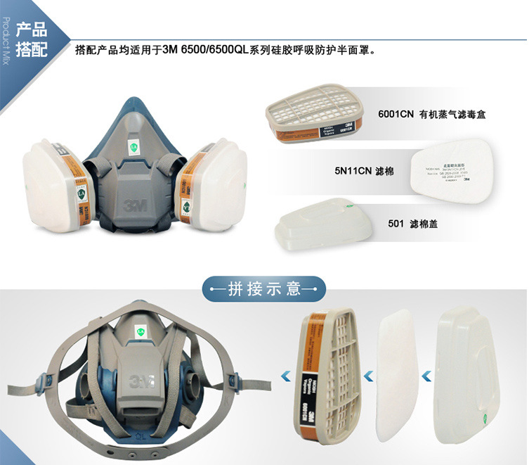 3M 6502QL硅胶材质半面型防毒面具(快扣版)