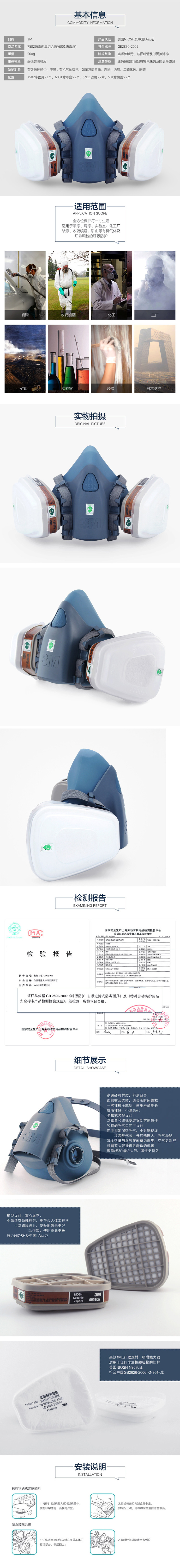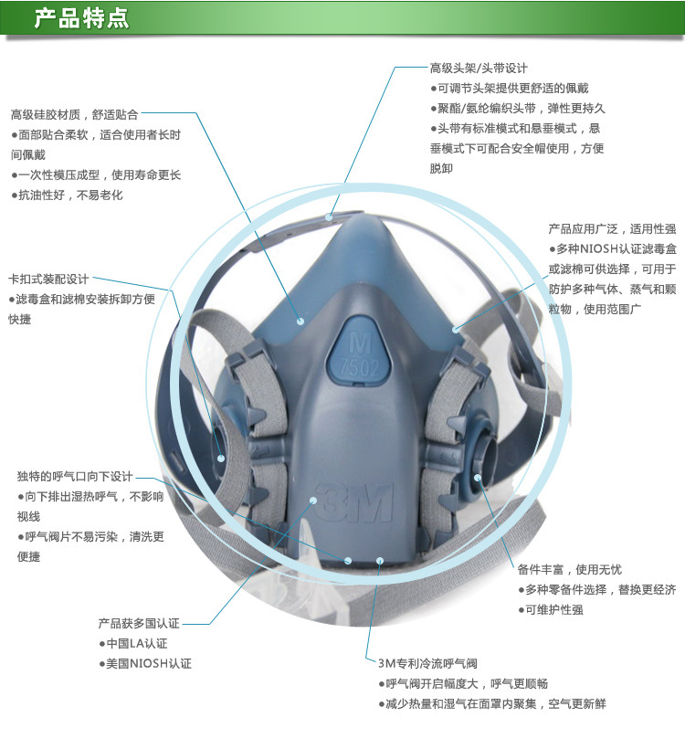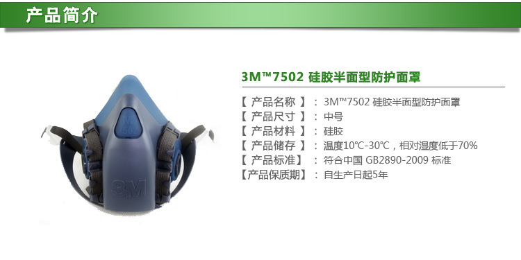 3M 7502硅胶材质半面型防毒面具(中号)