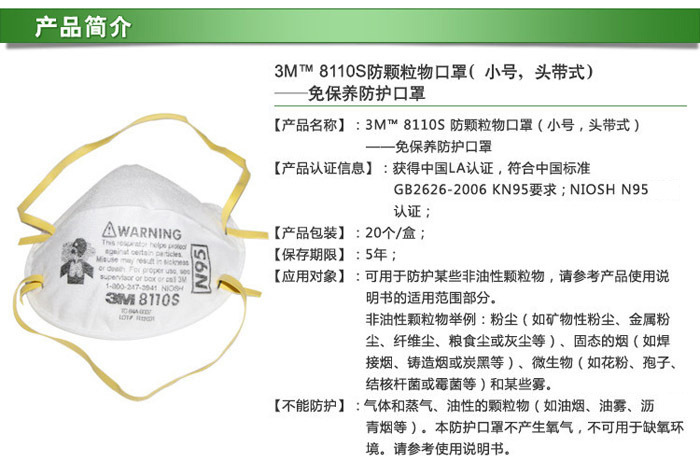 3.符合美国国家职业安全及健康协会标准(NIOSH)N95认可