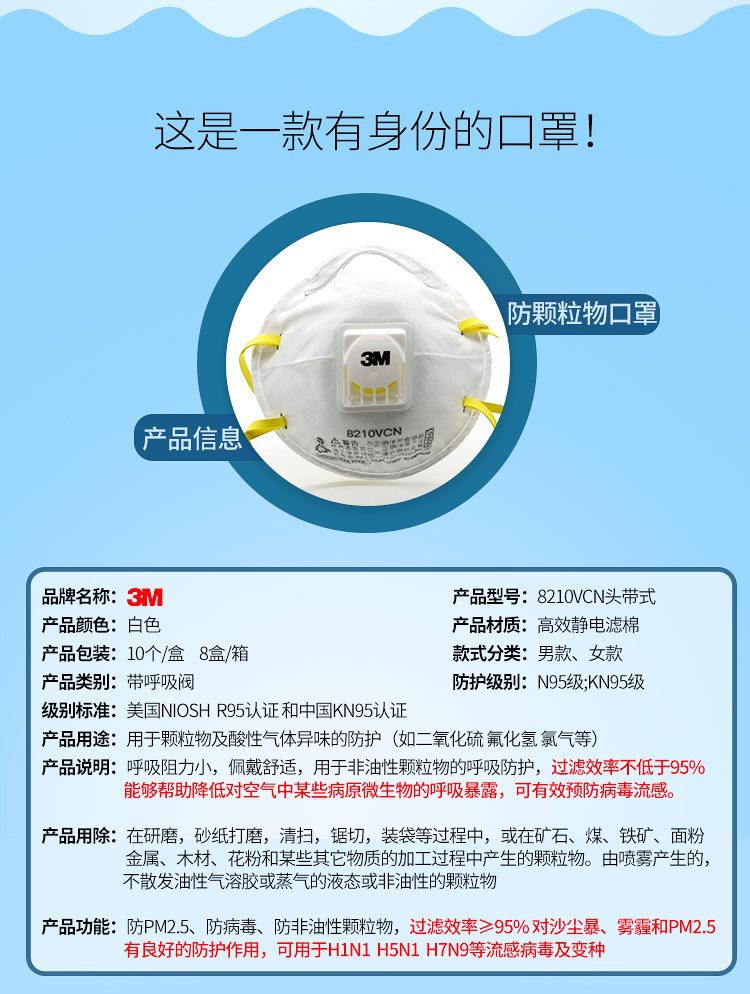 3M 8210V带阀防颗粒物口罩