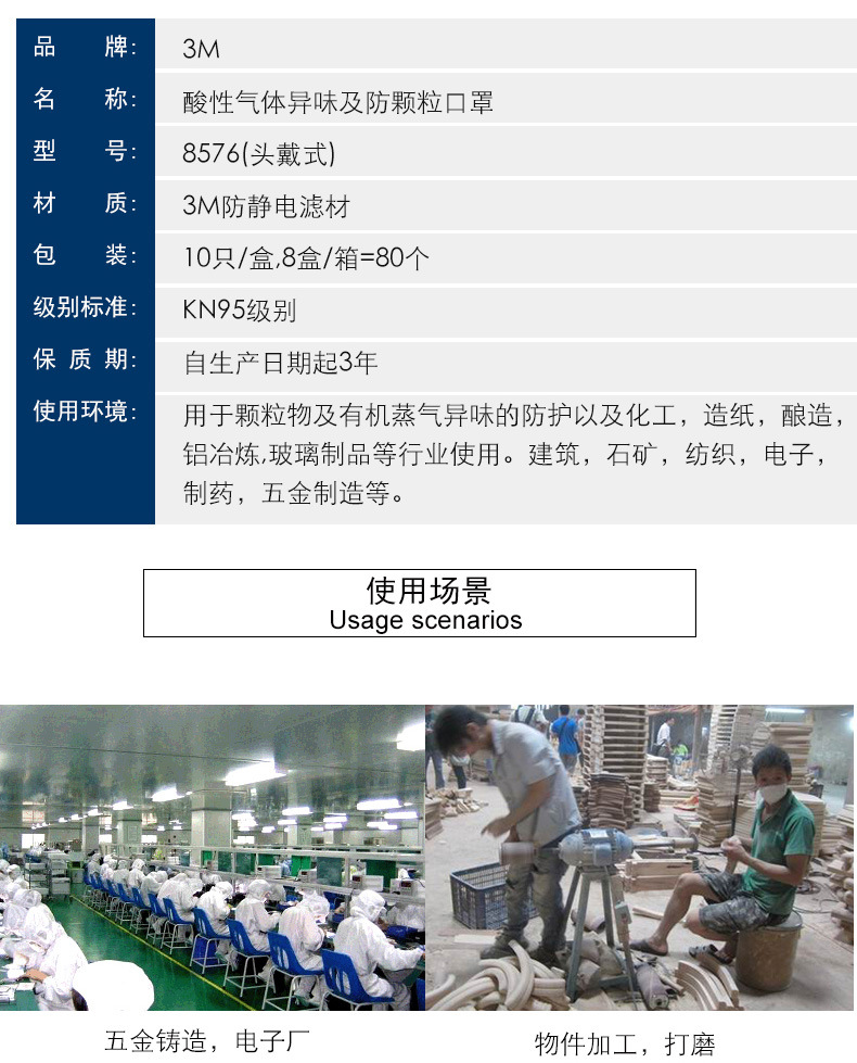 3M 8576CN酸性气体异味及防颗粒物口罩